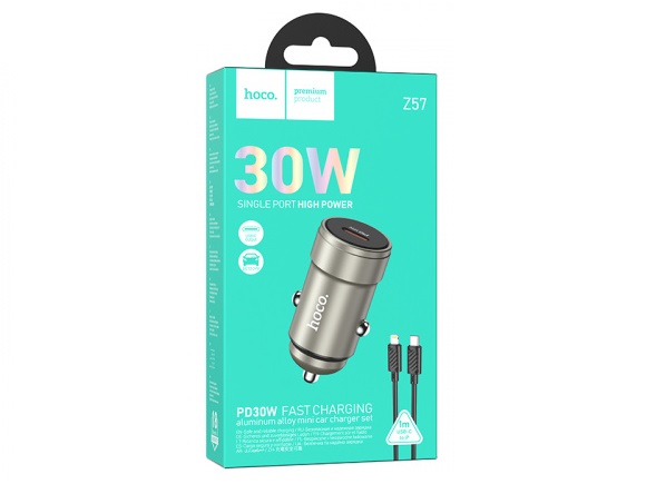 АЗУ 1 Type-C HOCO Z57 Glorious, 3.0A, металл, QC3.0, PD30Вт, кабель Type-C — 8 pin, серый