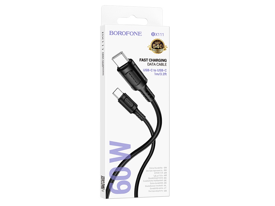 Кабель Type-C — Type-C Borofone BX111 Feliz, 1.0м, 3.0A, PD60Вт, пластик, цвет: чёрный (1/360)