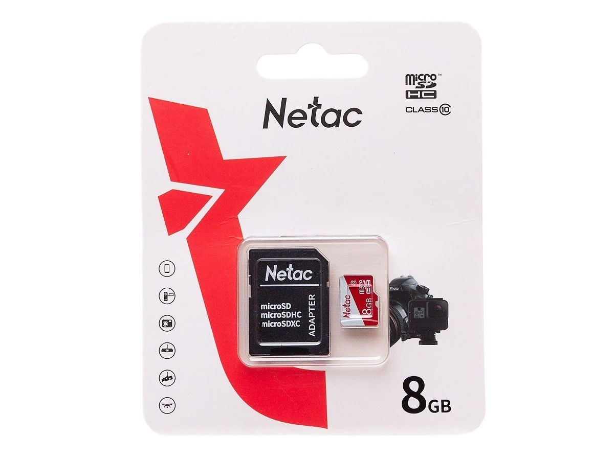 Карта памяти MicroSD 8GB Netac P500 Eco Class 10 + SD адаптер