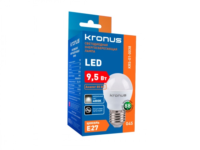 Будьте первым, кто оставил отзыв на “Лампа светодиодная KRONUS G45 шар 9,5 Вт 220V 4000K E27 нейтральный свет (10/100)”