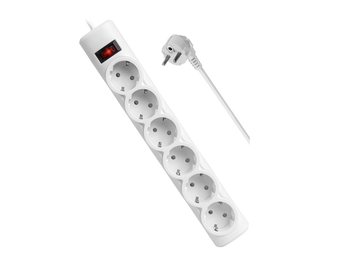 Сетевой фильтр DEFENDER DFS155, 6 розеток, ПВС 3*1,0 мм2, мощность 2200 Вт, ток 10А, белый, 5 м (30)