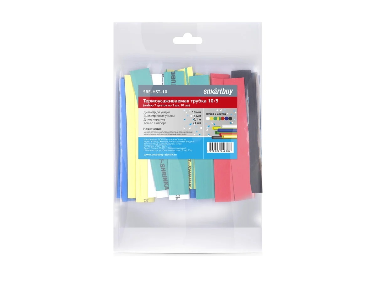 Термоусаживаемая трубка SMARTBUY 10/5 набор (набор 7 цветов по 3 шт, 10 см) (10/400)
