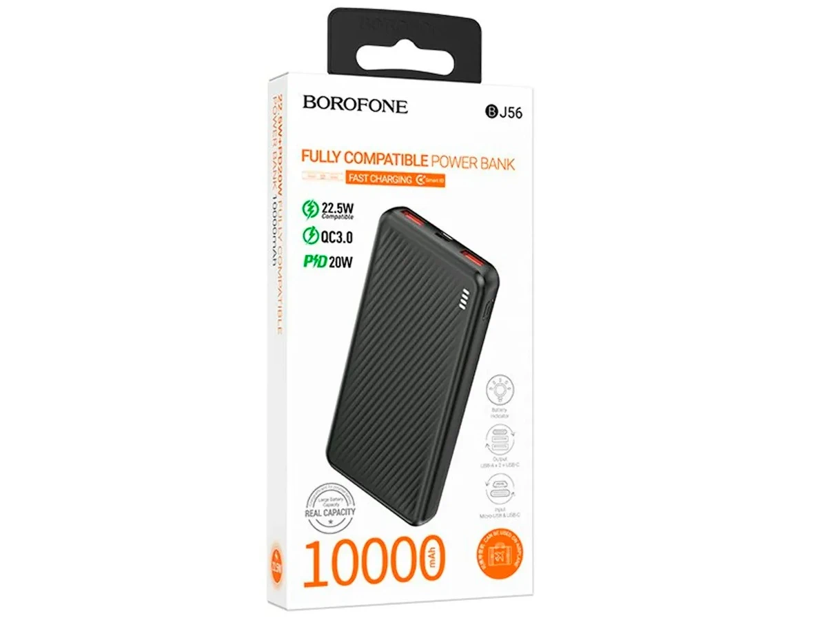 Акк.внешн. Borofone BJ56 Graceful, 10000mAh, пластик, PD20Вт, 1 USB выход, Type-C, цвет: чёрный