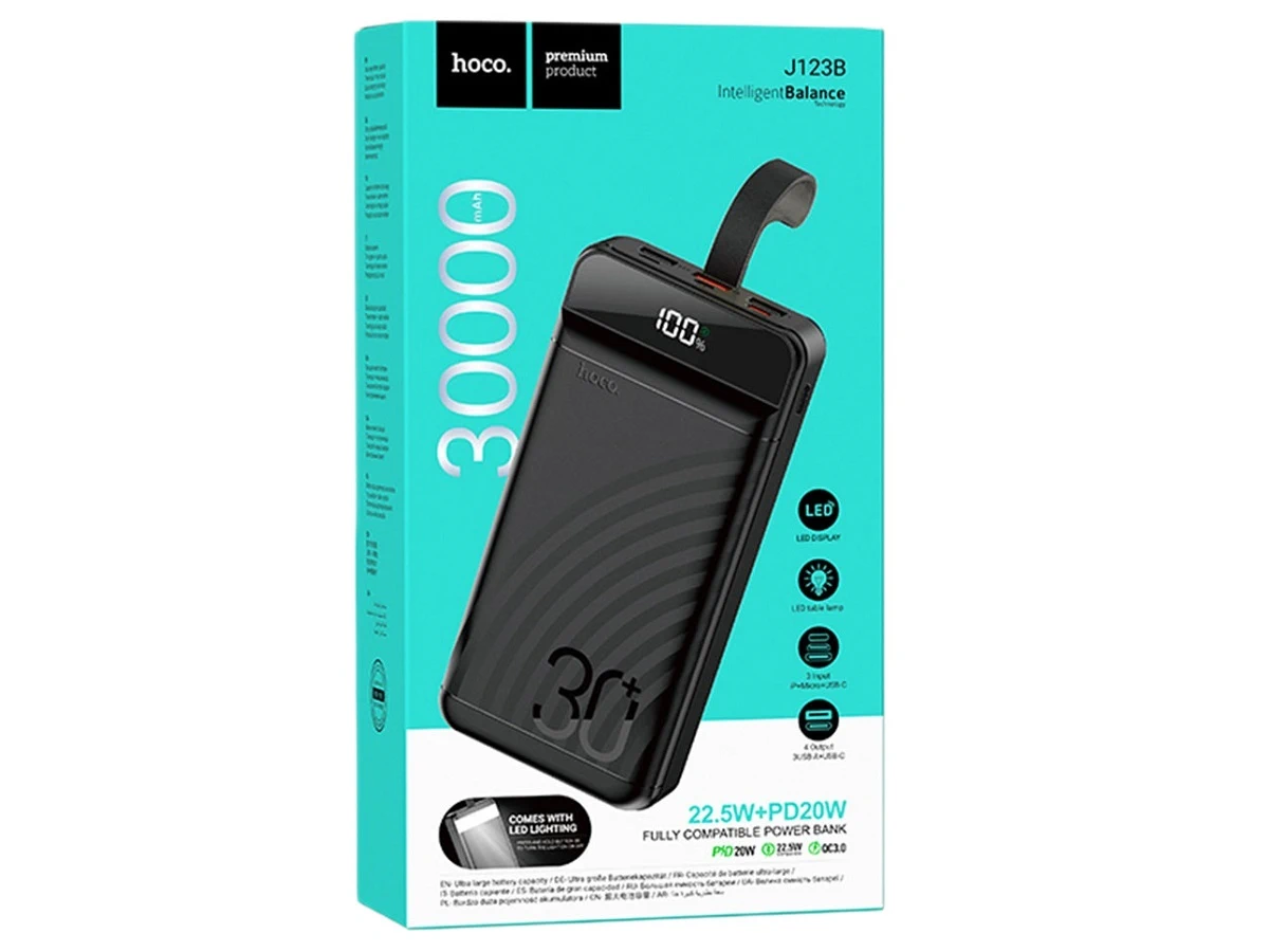 Получите консультацию по товару Акк.внешн. HOCO J123B Element, 30000mAh, 2 USB выхода, PD20 Вт, QC3.0, дисплей, цвет: чёрный (1/25) от наших опытных менеджеров.