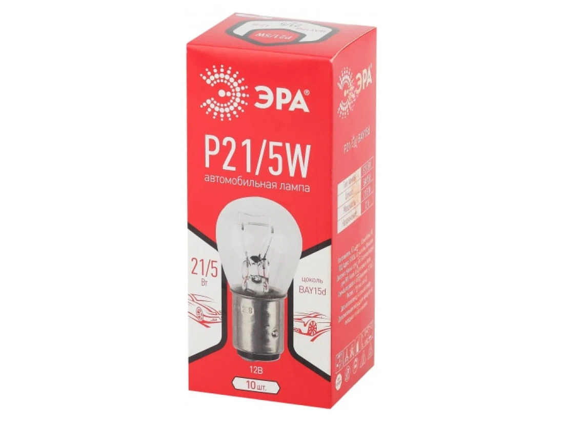 Автолампа ЭРА P21/5W BAY15d (лампа для указателей поворота и стоп-сигнала) (10/1000/16000)