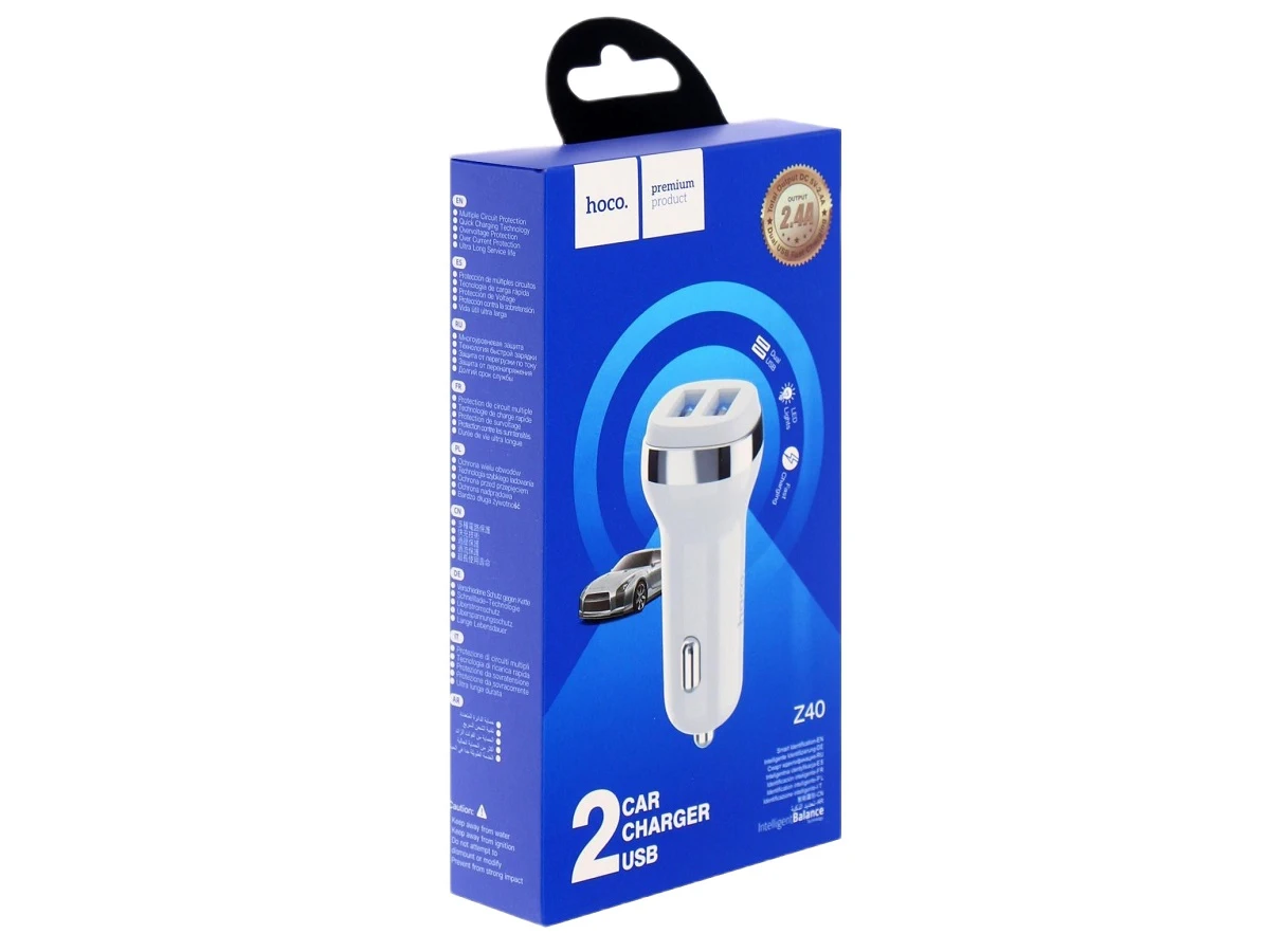 АЗУ 2 USB HOCO Z40, 2400mA, цвет: белый (1/12/120)