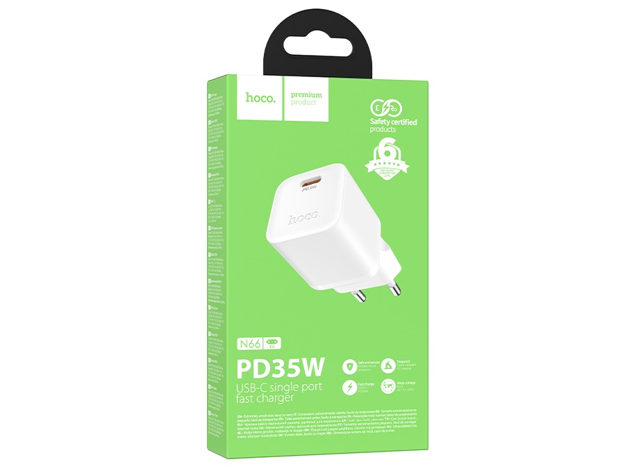 Блок питания сетевой 1 Type-C HOCO N66, PD35Вт, цвет: белый (1/13/130)