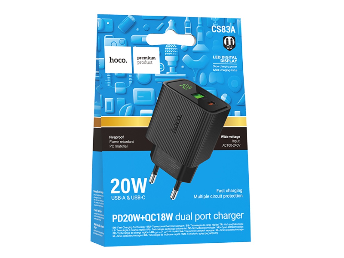 Блок питания сетевой 1 USB, 1 Type-C HOCO CS83A Excellent, 3.0A, PD20Вт, цвет: черный (1/18/180)