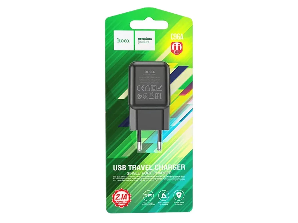 Блок питания сетевой 1 USB HOCO C96A, 2100mA, цвет: чёрный (1/27/162)