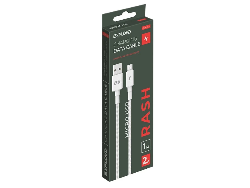 Дата-кабель/Exployd/USB — microUSB/круглый/нейлон/белый/1М/2A/Rash/EX-K-1155