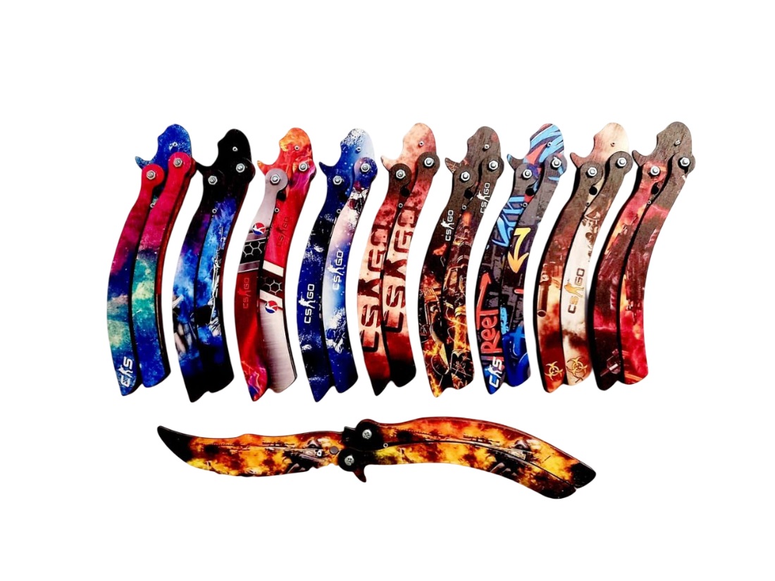 Дерево Нож «Бабочка-ассорти» 27см. Принт-краска.Кривая. МИКС.