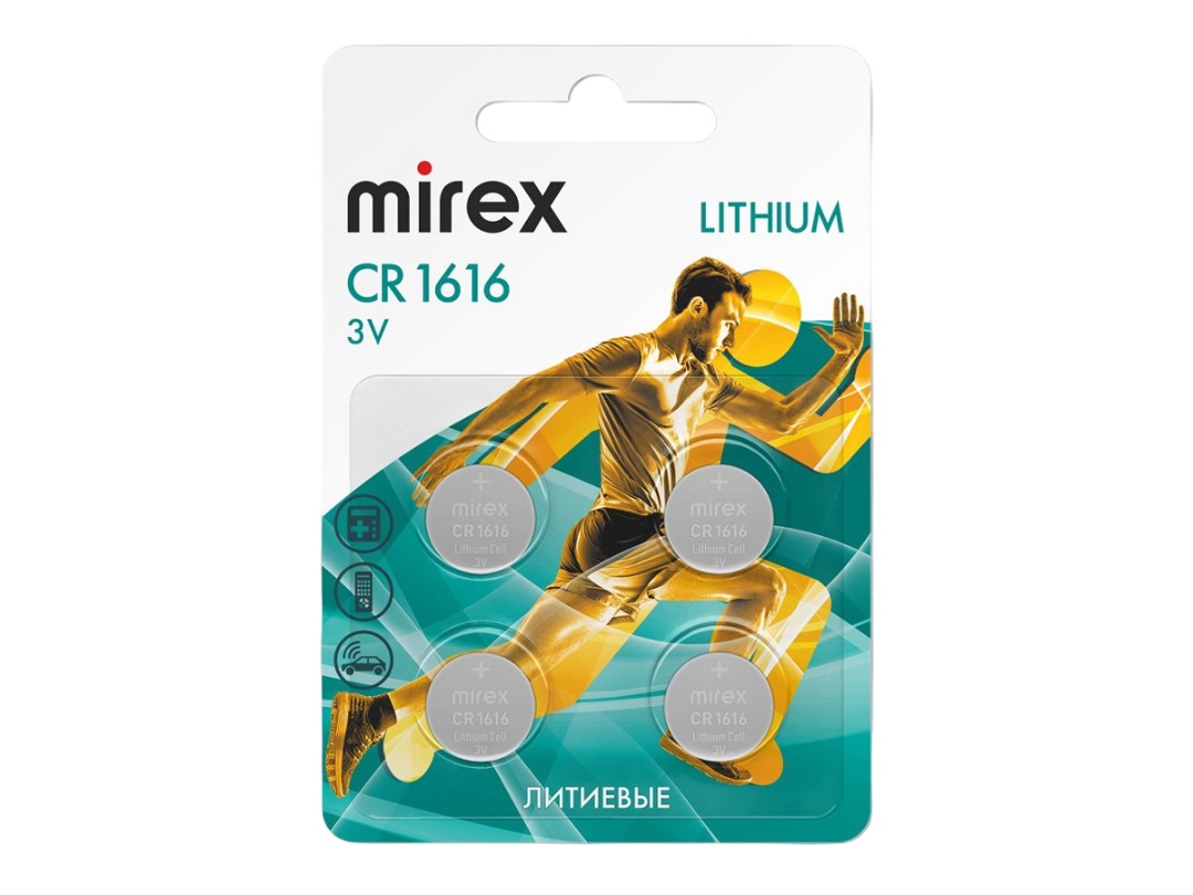 Элемент питания Mirex CR1616 3V 4 шт (4/216/648), ecopack