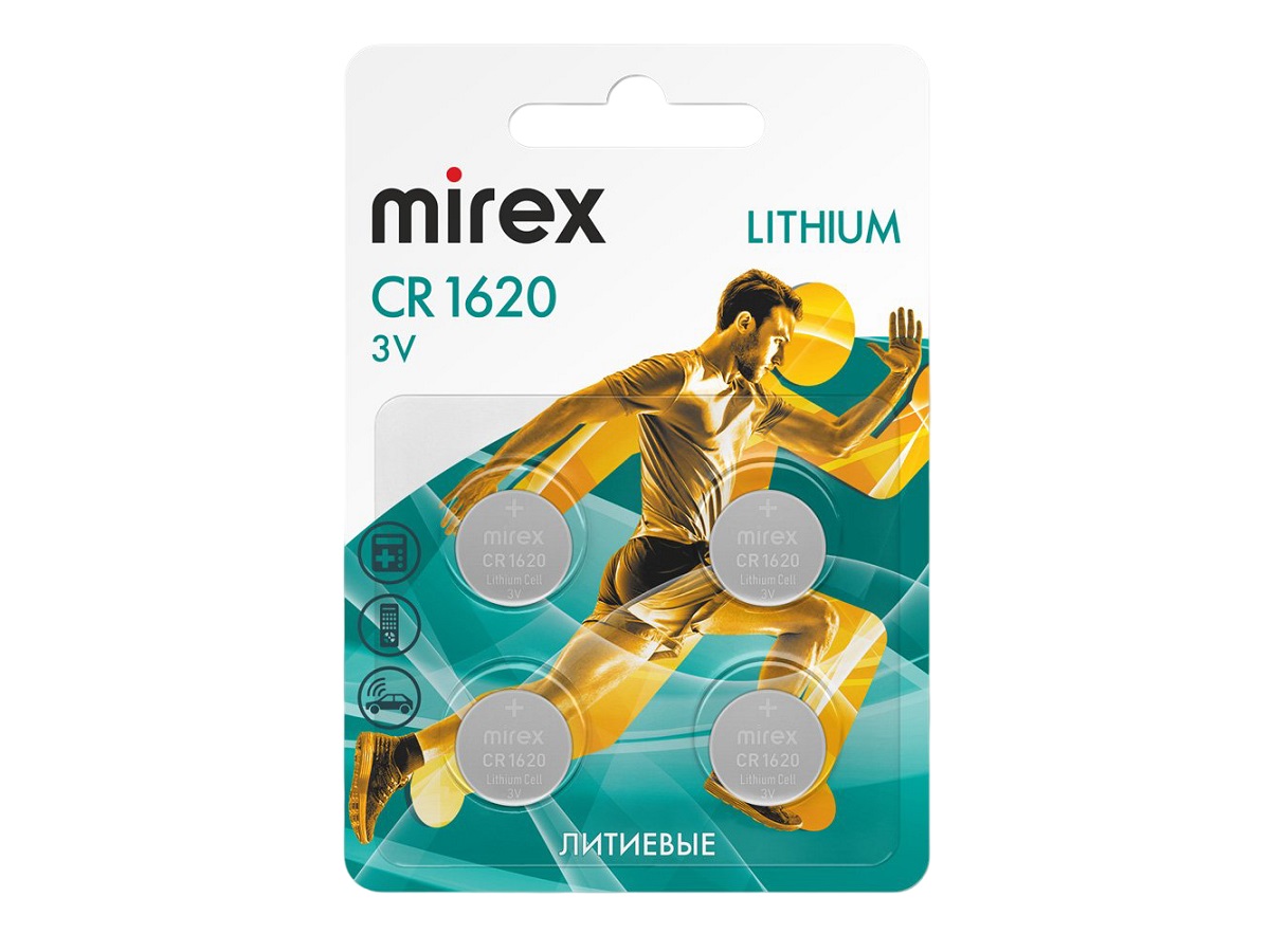 Элемент питания Mirex CR1620 3V 4 шт (4/216/648), ecopack