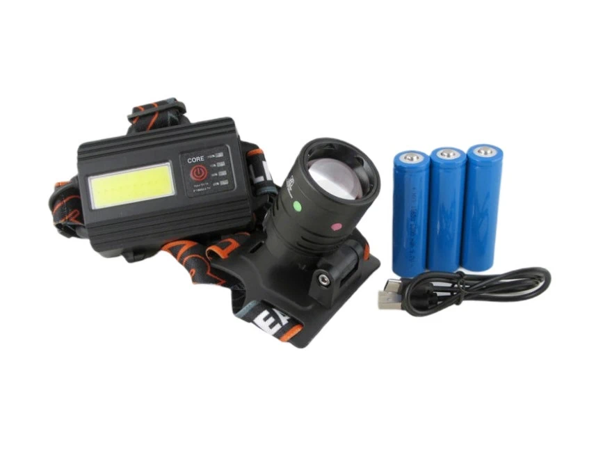 Фонарь на голову 68 (TG, Аккум. 3*18650, Type-C, фокус, индикатор) красный задний диод