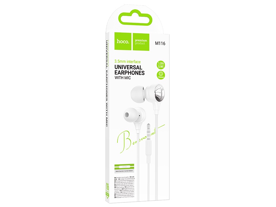 Гарнитура HOCO M116 Benevolent, микрофон, кнопка ответа, цвет: белый (1/31/310)
