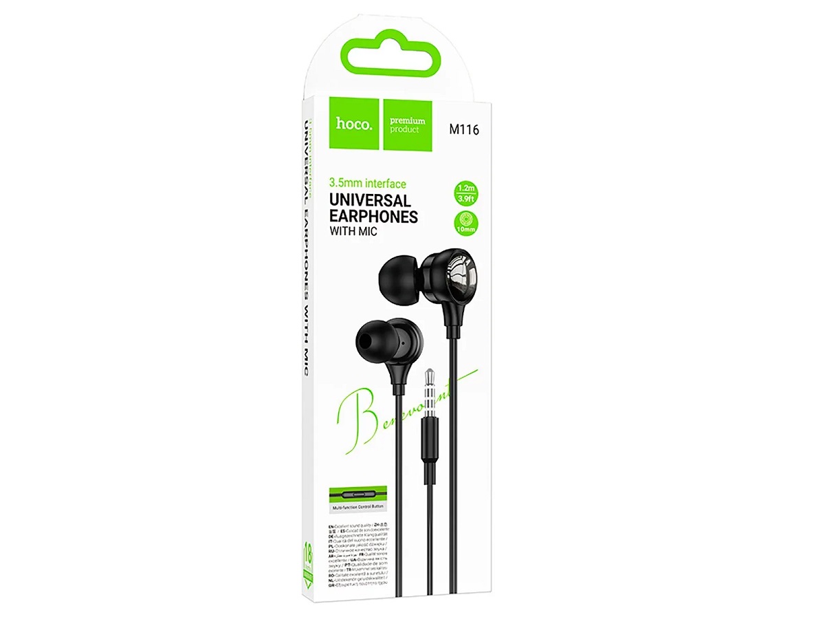 Гарнитура HOCO M116 Benevolent, микрофон, кнопка ответа, цвет: чёрный (1/31/310)