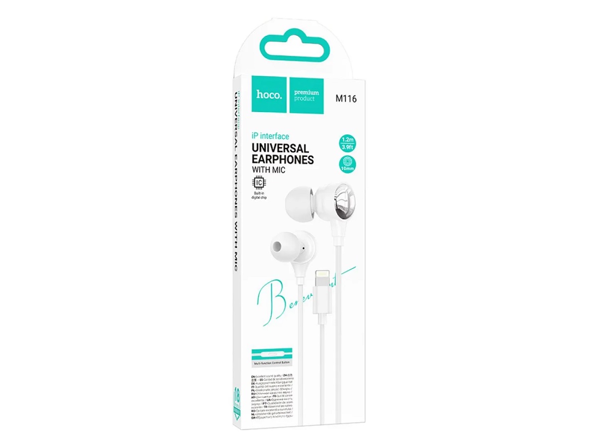 Гарнитура HOCO M116 Benevolent, микрофон, кнопка ответа, кабель 8 pin, белый (1/31/310)