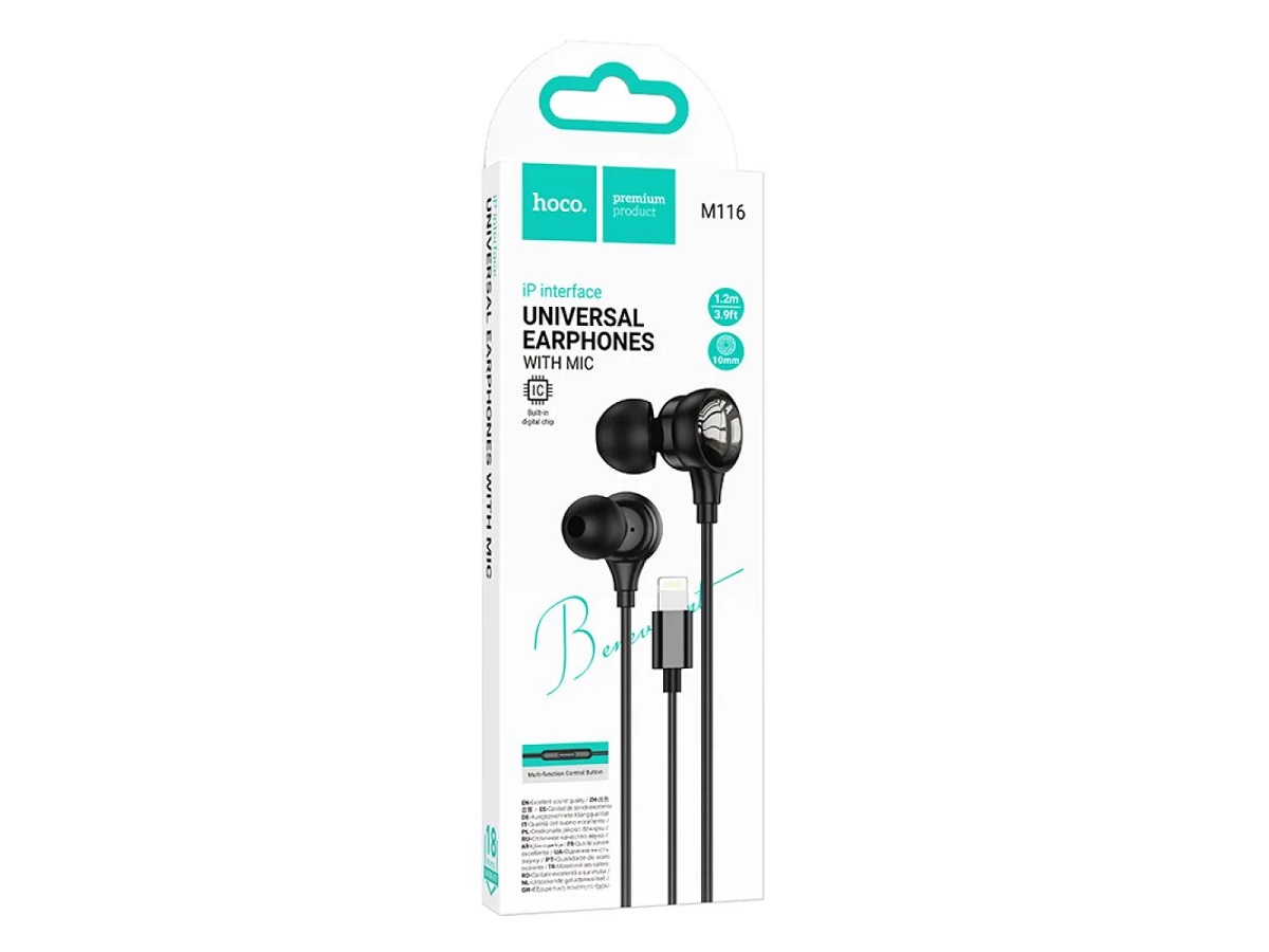 Гарнитура HOCO M116 Benevolent, микрофон, кнопка ответа, кабель 8 pin, цвет: чёрный (1/31/310)