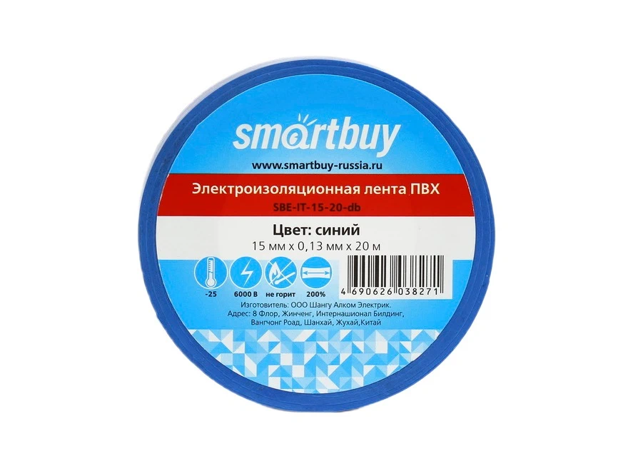 Изолента SMARTBUY 0,13х15мм, 20 метров, синяя (SBE-IT-15-20-db) (10/200)