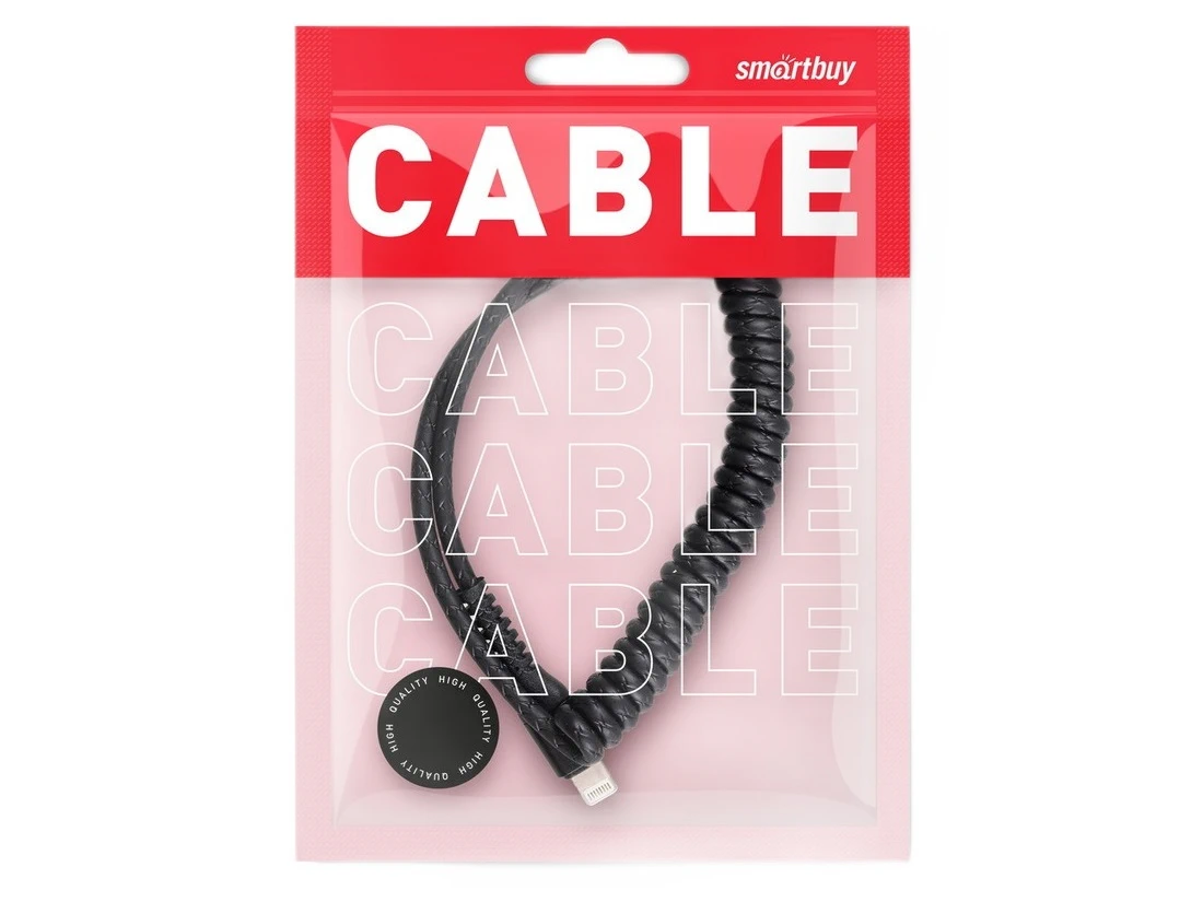 Кабель SMART BUY для iPhone USB 2.0 — 8 pin Lightning, спиральный, черный, 1 м. (1/500)