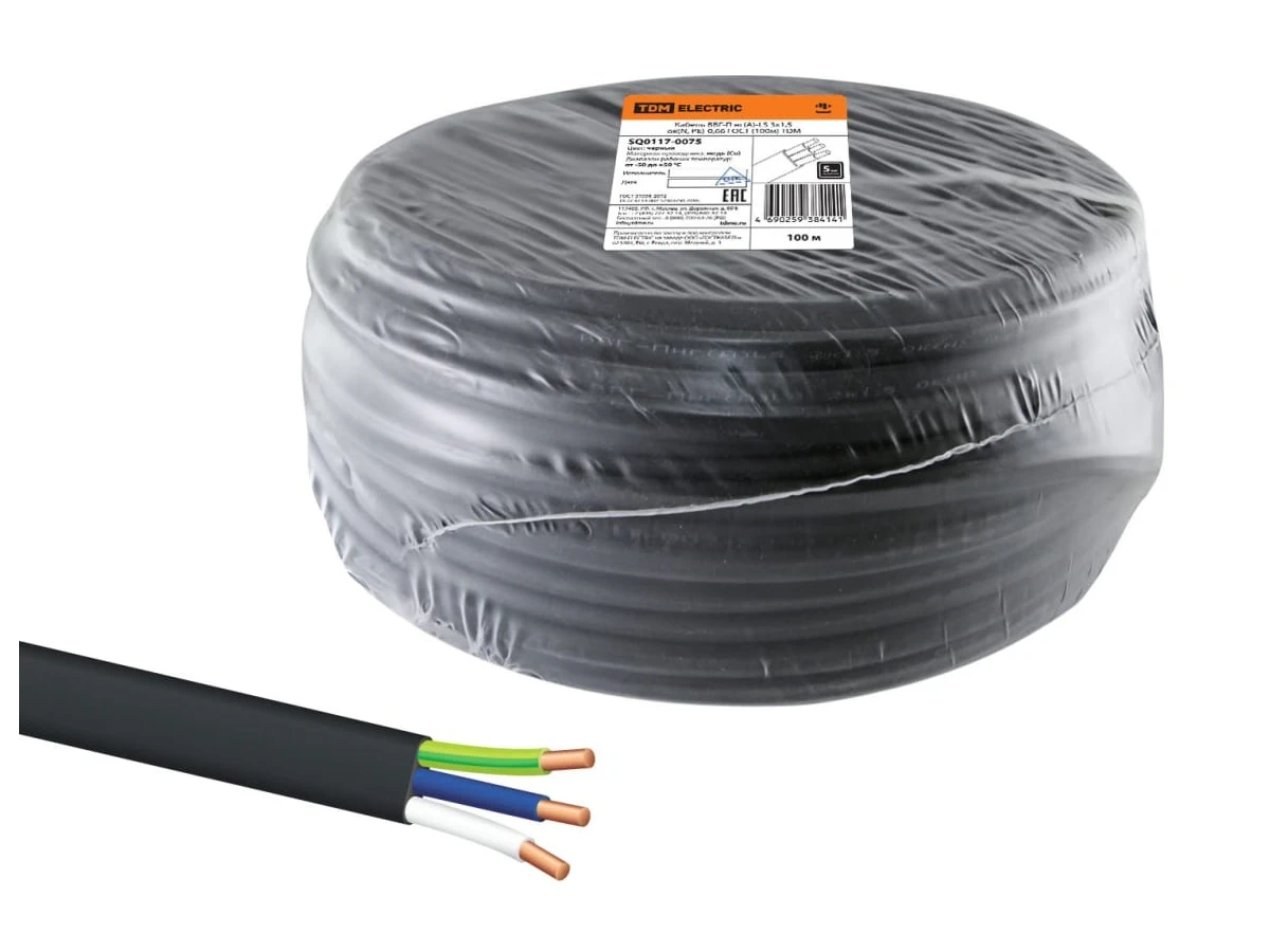 Кабель TDM ВВГ-Пнг(А)-LS 3х1,5 ок(N, PE)-0,66 ГОСТ (100м)