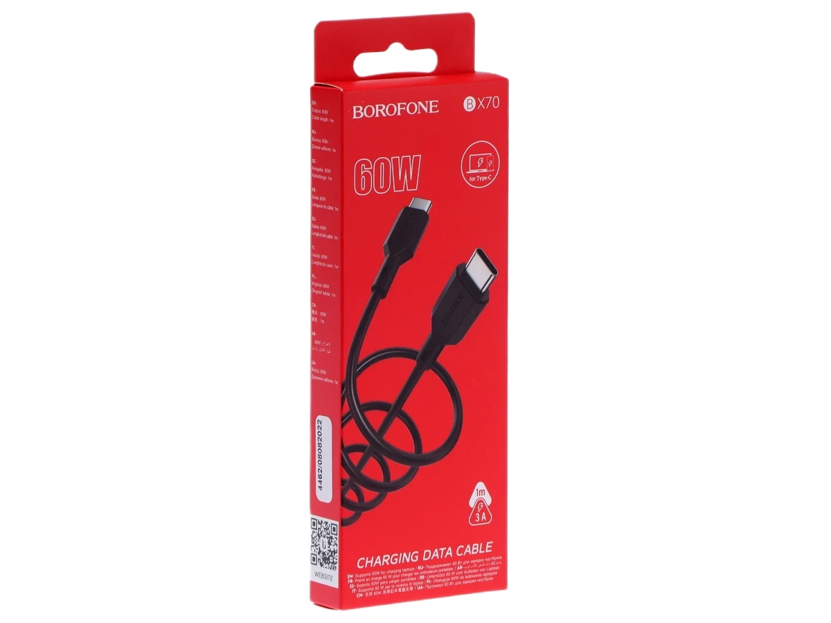Кабель Type-C — Type-C Borofone BX70 Shengda, 1.0м, круглый, 3.0A, силикон, PD60W, чёрный (1/63)
