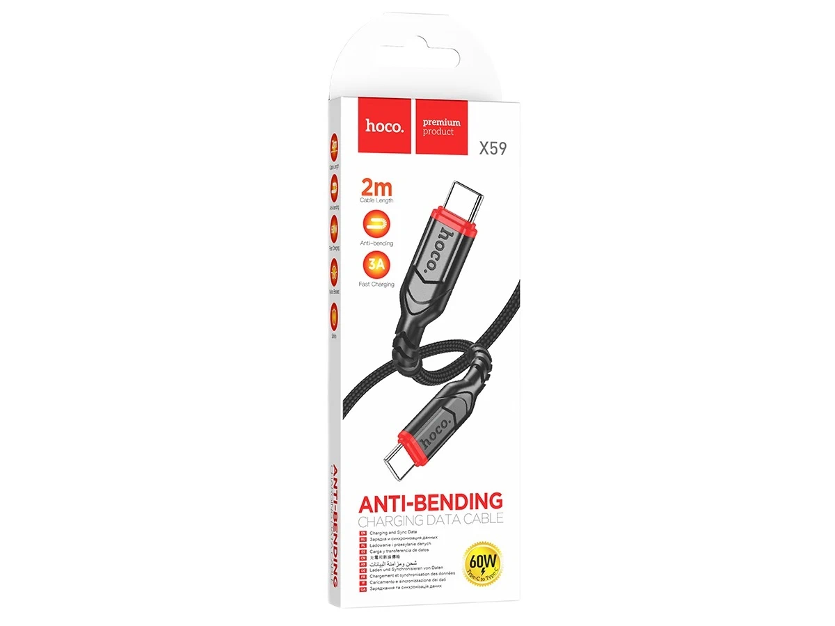 Кабель Type-C — Type-C HOCO X59 Victory, 2.0м, круглый, 3,0А, PD60Вт нейлон, цвет: чёрный (1/33/330)