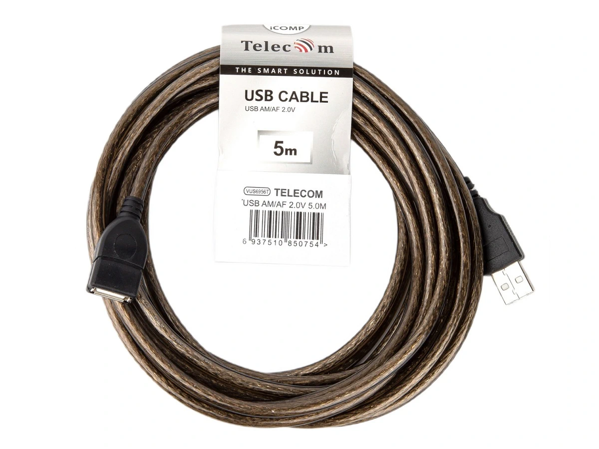 Кабель удлинительный USB2.0 AM/AF прозрачная изоляция 5m Telecom (1/75)
