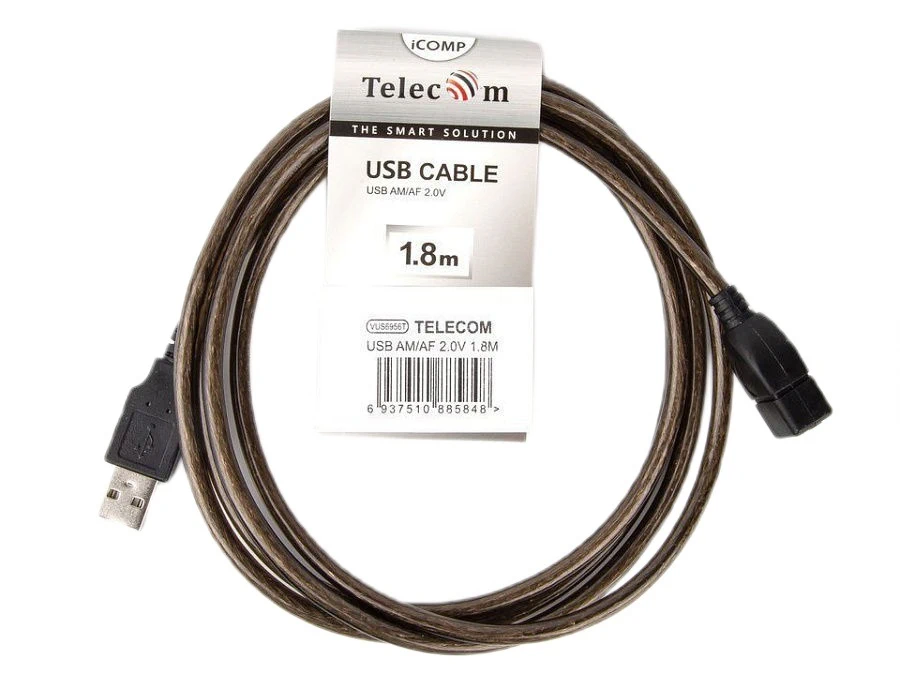 Кабель удлинительный USB2.0 AM/AF прозрачная изоляция 1.8m Telecom (1/200)