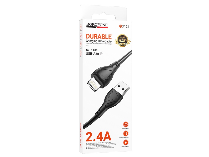 Кабель USB — 8 pin Borofone BX121 Energy, 1.0м, круглый, 2.4А, ПВХ, цвет: черный упакован (1/360)