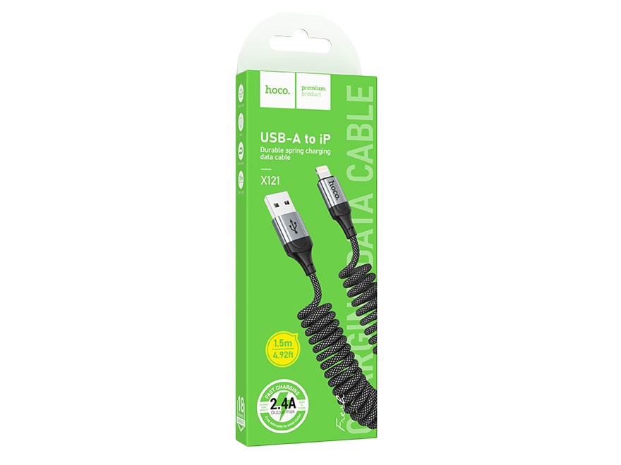 Кабель USB — 8 pin HOCO X121 СПИРАЛЬ чёрный (1/31/310)