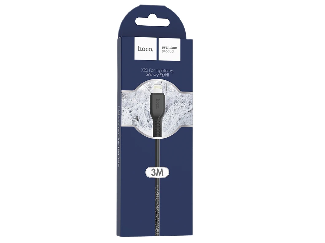 Кабель USB — 8 pin HOCO X20, 3.0м, круглый, 2.1A, силикон, цвет: чёрный (1/30/300)
