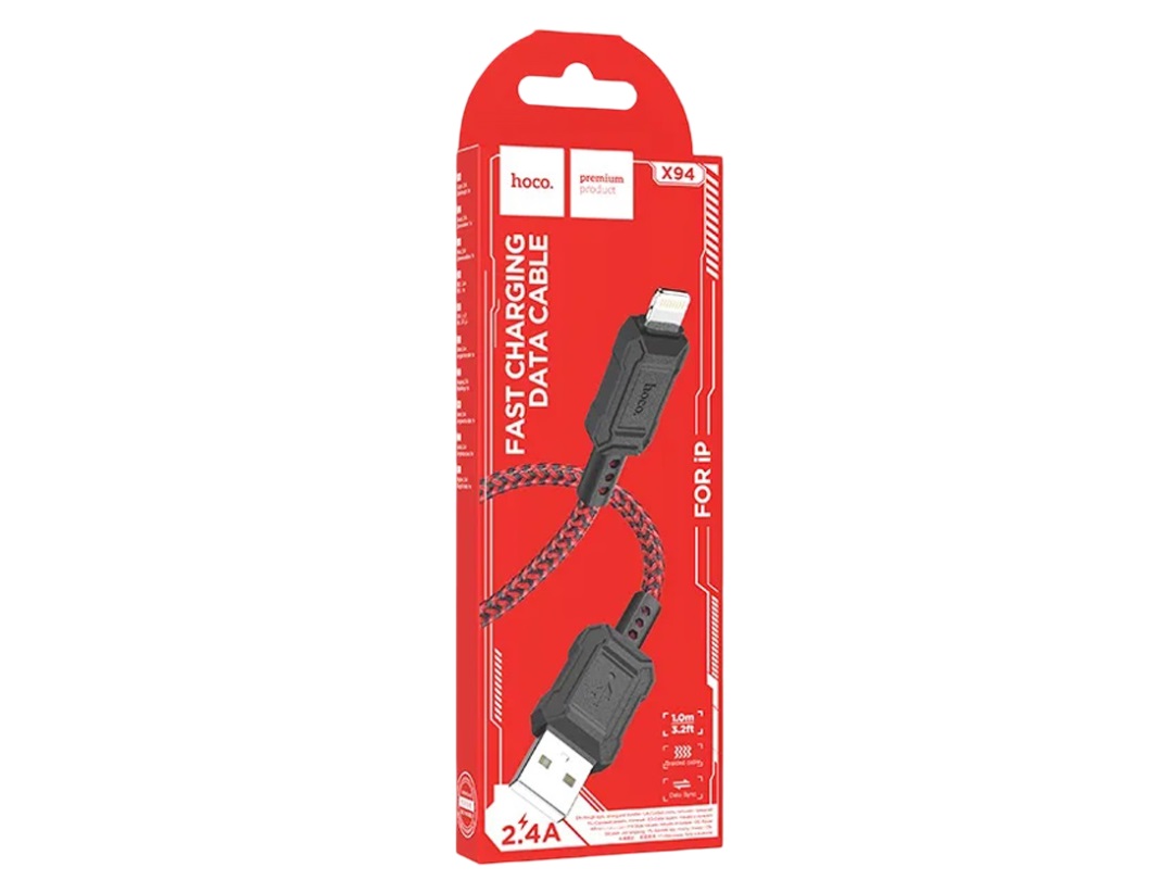 Кабель USB — 8 pin HOCO X94 Leader, 1.0м, 2.4A, ткань, цвет: красный (1/33/330)