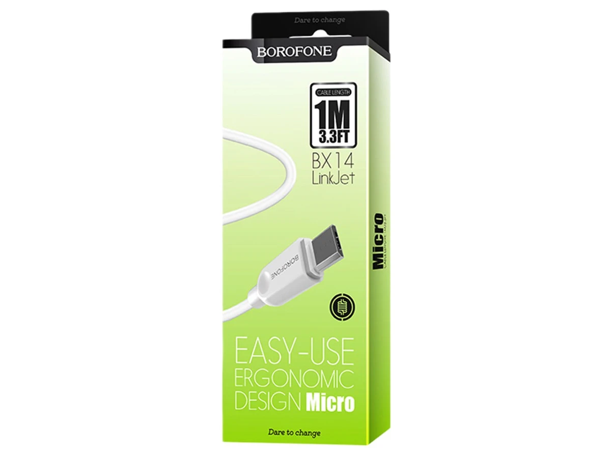 Кабель USB — микро USB Borofone BX14, 1.0м, круглый, 2.4A, силикон, цвет: белый (1/360)