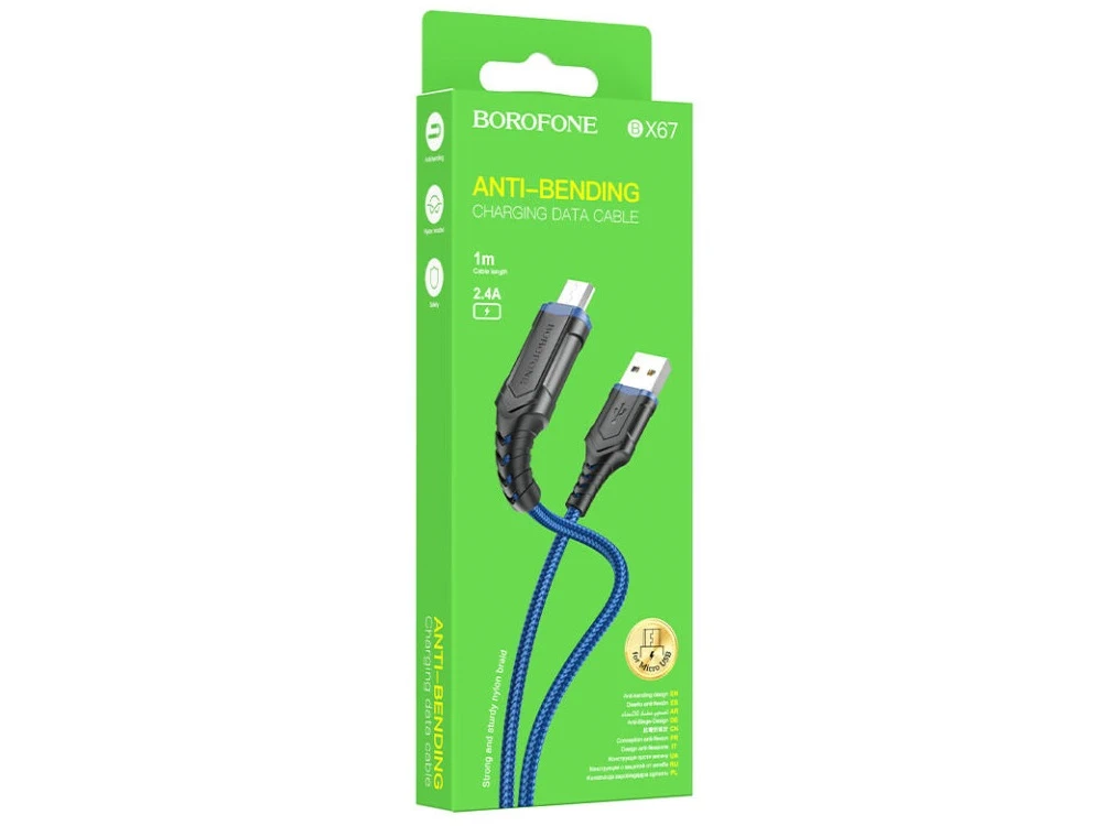 Кабель USB — микро USB Borofone BX67, 1.0м, круглый, 2.4A, ткань, цвет: синий (1/360)