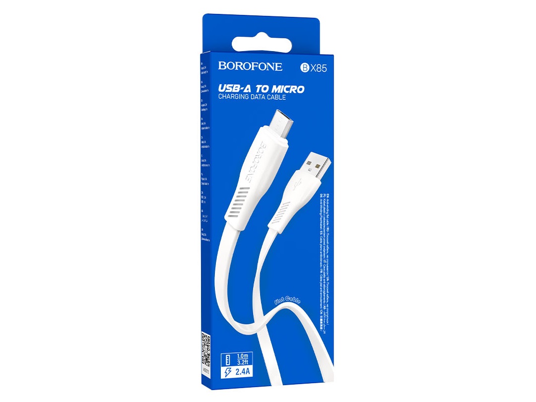 Кабель USB — микро USB Borofone BX85 Auspicious, 1.0м, 2.4A, цвет: белый (1/360)