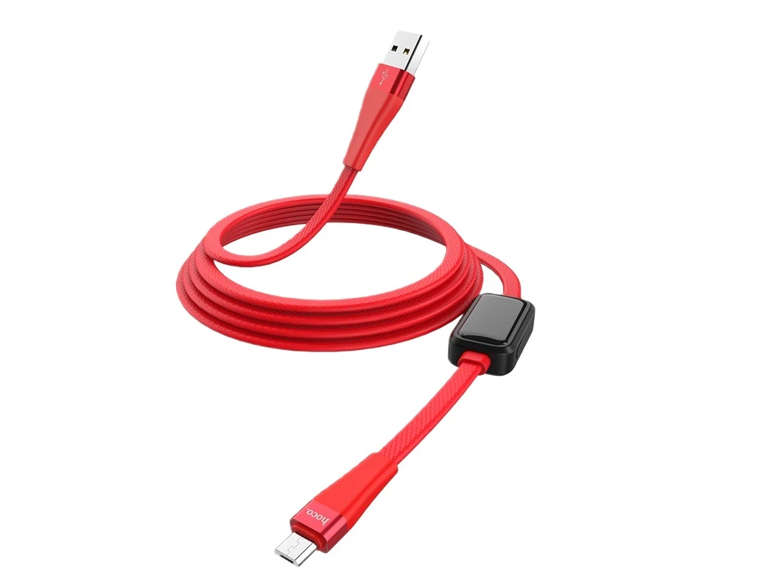 Кабель USB — микро USB HOCO S4, 1.2м, плоский, 2.4A, силикон, дисплей, цвет: красный (1/18/180)