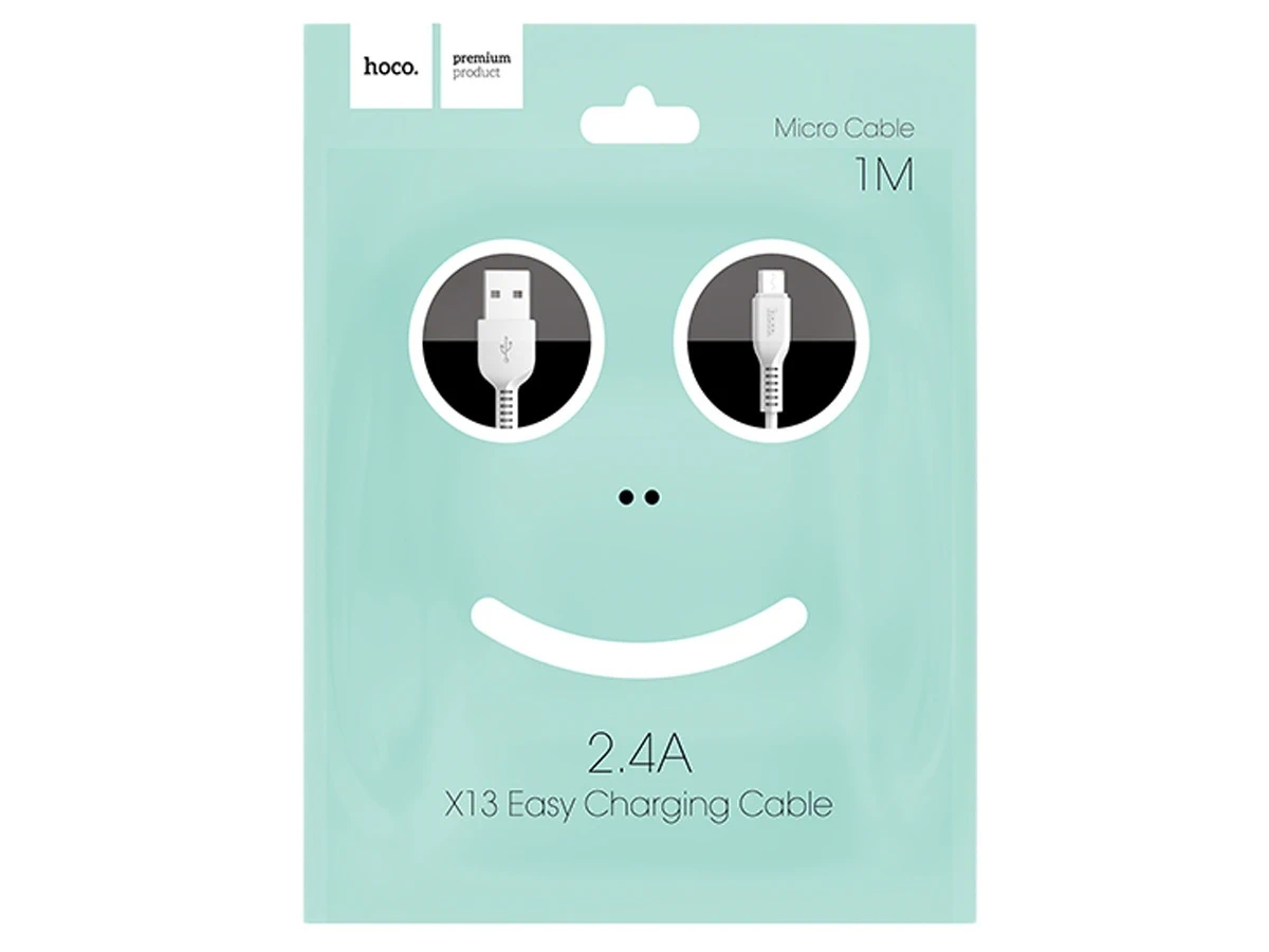 Кабель USB — микро USB HOCO X13 Easy, 1.0м, круглый, 2.4A, силикон, цвет: белый (1/36/360)