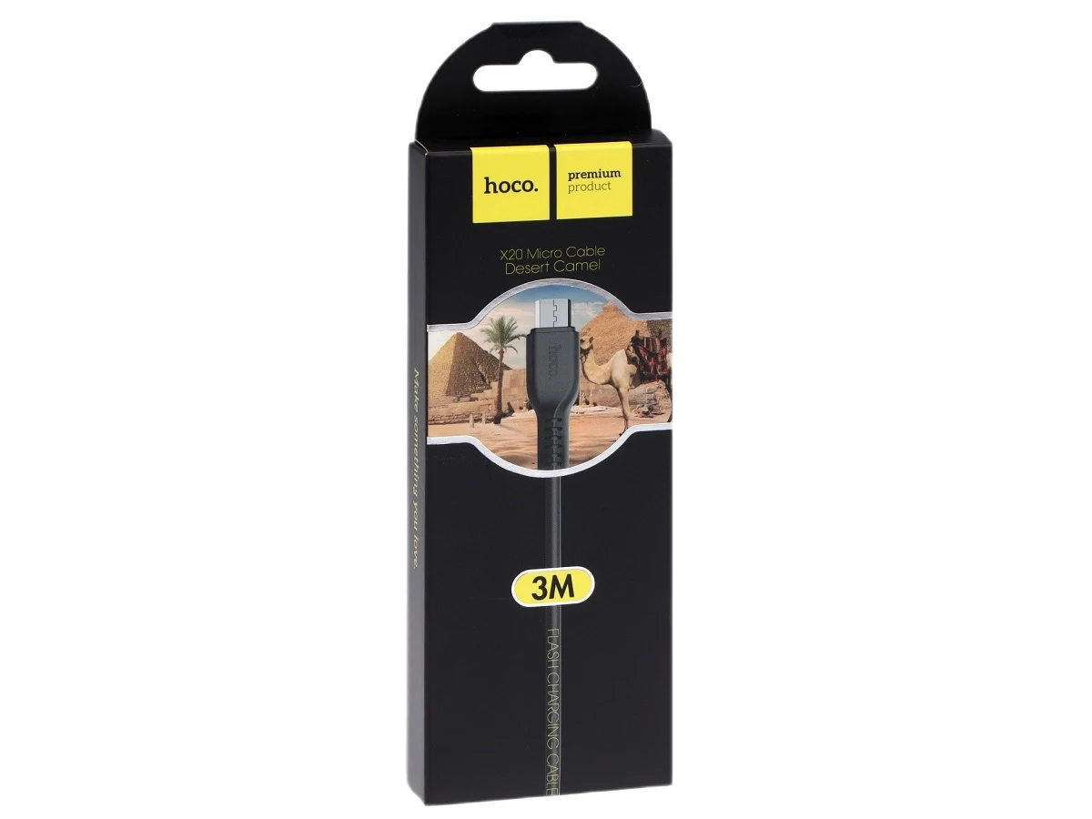 Кабель USB — микро USB HOCO X20, 3.0м, круглый, 2.1A, силикон, цвет: чёрный (1/30/300)