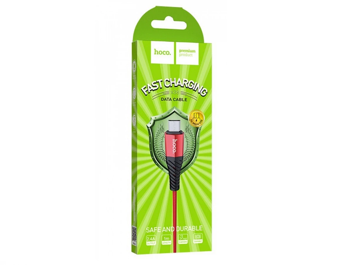 Кабель USB — микро USB HOCO X38 Cool, 1.0м, круглый, 2.4A, нейлон, быстрая зарядка, цвет: красный