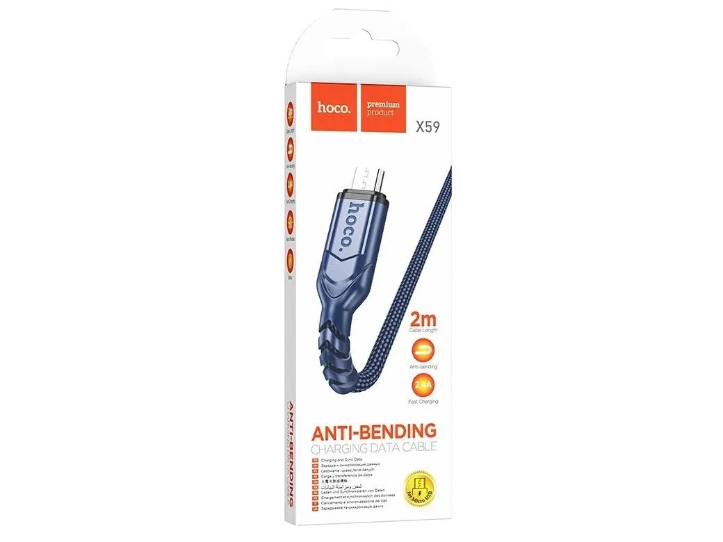 Кабель USB — микро USB HOCO X59 Victory, 2.0м, круглый, 2.4A, нейлон, цвет: синий (1/30/300)