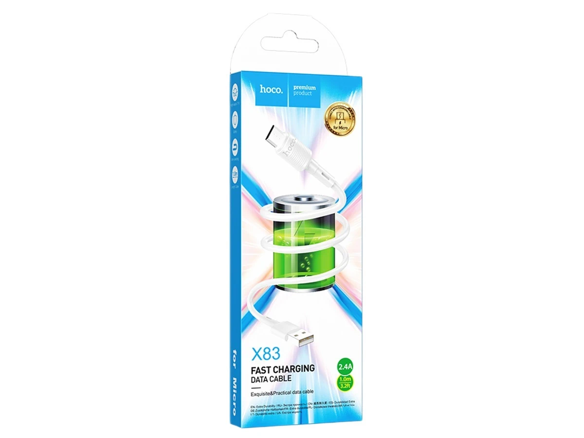Кабель USB — микро USB HOCO X83 Victory, 1.0м, круглый, 2.4A, силикон, цвет: белый (1/33/330)