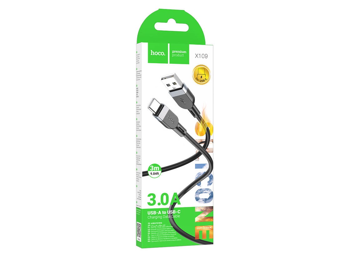 Кабель USB — Type-C HOCO X109 Energy, 3.0м, круглый, 3.0А, силикон, цвет: чёрный (1/31/310)