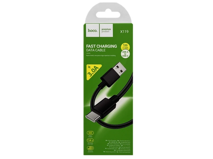 Кабель USB — Type-C HOCO X119, 1.0м, круглый, ткань, 3.0A, цвет: черный (1/1000)