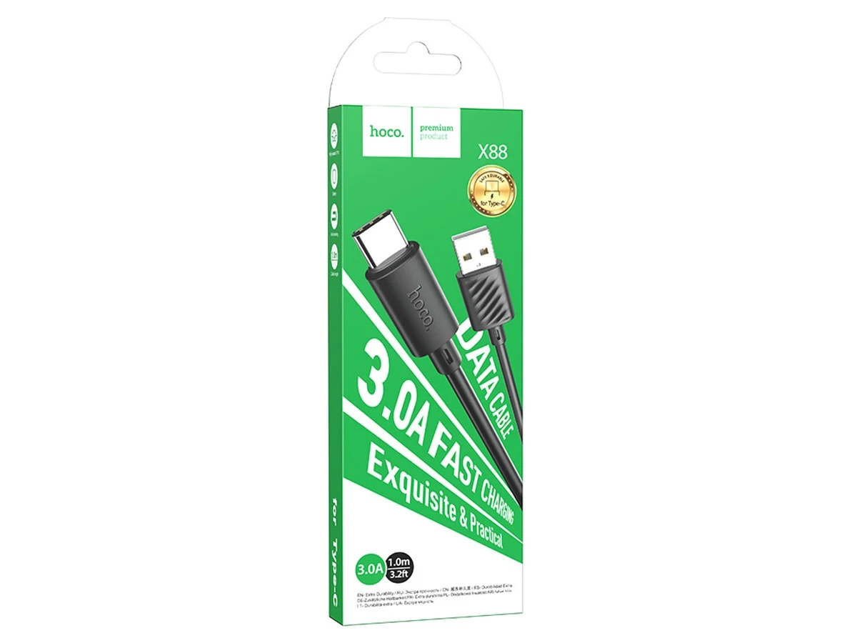 Кабель USB — Type-C HOCO X88 Gratified, 1.0м, круглый, 2.4A, силикон, цвет: чёрный (1/33/330)