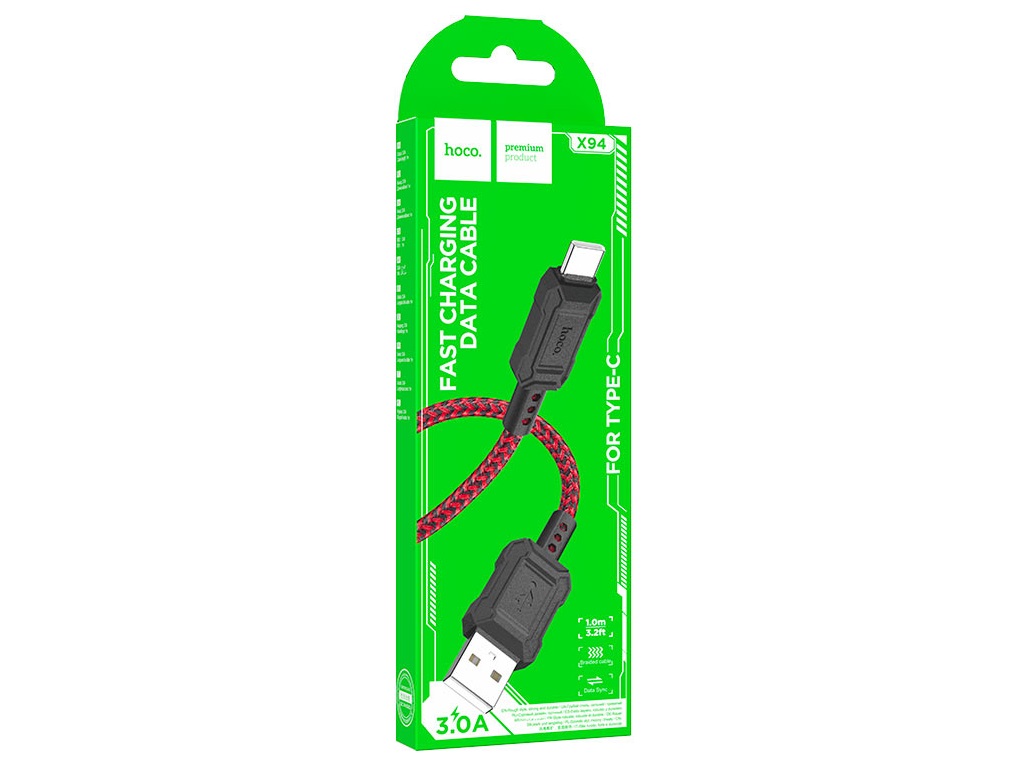 Кабель USB — Type-C HOCO X94 Leader, 1.0м, 3.0A, ткань, цвет: красный (1/33/330)