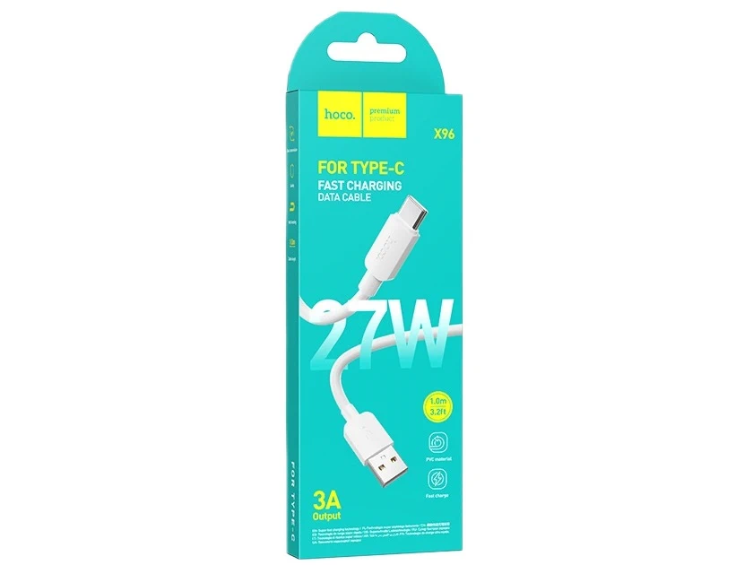 Кабель USB — Type-C HOCO X96 Hyper, 1.0м, PD27Вт, 3.0А, цвет: белый (1/31/310)