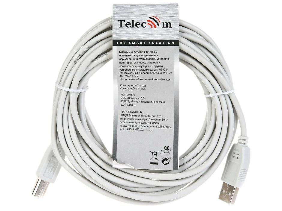 Кабель USB2.0 A—>B (5.0м) Telecom (1/80)