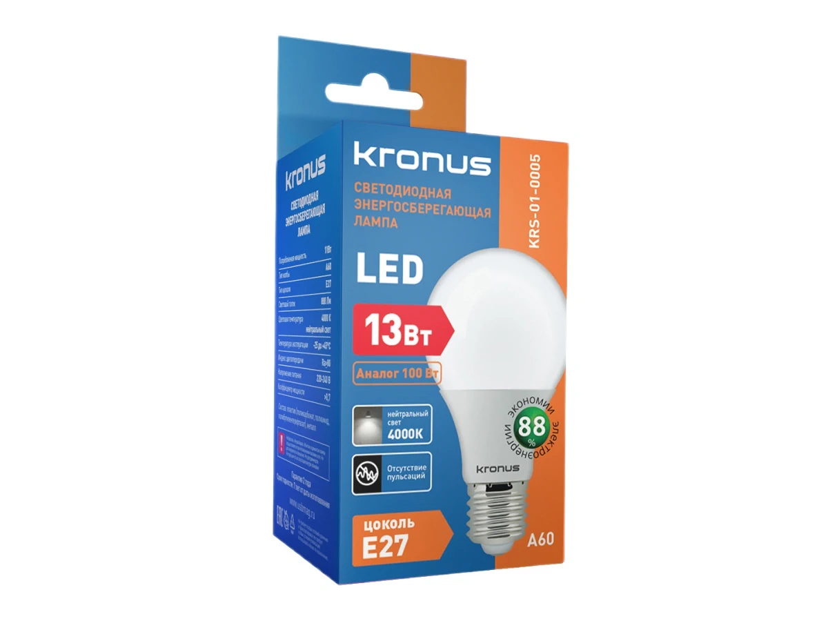 Лампа светодиодная KRONUS A60 груша 13 Вт 220V 4000K E27 нейтральный свет (10/100)