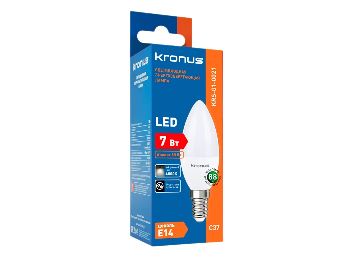Лампа светодиодная KRONUS C37 свеча 7 Вт 220V 4000K E14 нейтральный свет (10/100)
